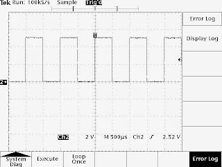 No errors were reported with channel 2. Are these errors related to my autoset problems? To answer this, I performed a simple test by turning off channel 1 waveform display, feeding a signal to channel 2 and press AUTOSET. Surprisingly, autoset worked just fine and selected the correct settings to display a stable waveform on channel 2: