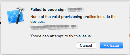 On a side note, if you attempt to build your code on a machine without valid provisioning profiles, and xCode offers to fix the issue for you like in the following screenshot …