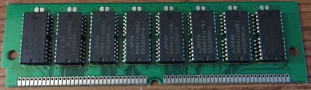 Take note that you have to use normal SIMM modules, and not composite SIMM modules, which have a lot of memory chips (usually 8) on it and is not compatible with the Multi Evolution 500 (or with many other older hardware such as Apple Compact Macintosh). Below are the photos of a typical normal SIMM memory and a composite SIMM module: