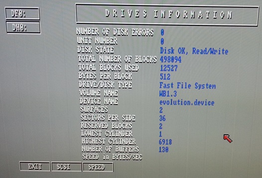 At this point the basic setup is completed. I also tried SysInfo and noted that the SCSI2SD is detected as evolution.device: